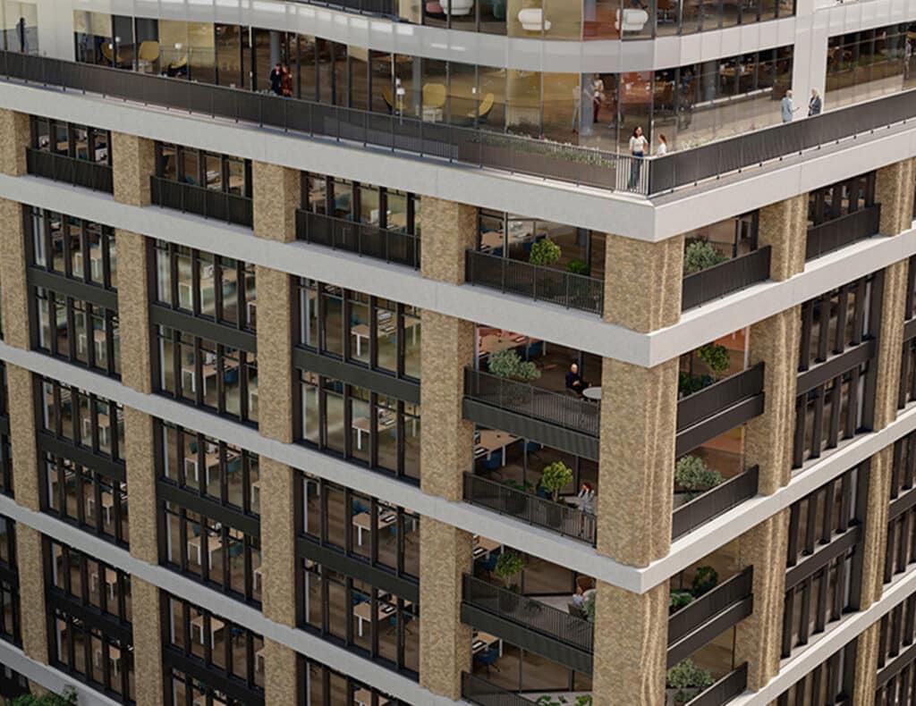 Designed by award winning architects Squire & Partners, TIDE will be a net zero carbon development, has received a NABERS design reviewed target rating of 5* and is targeting a certification of BREEAM Outstanding. It is set to surpass the current LETI best practice target for embodied carbon by more than 10%.