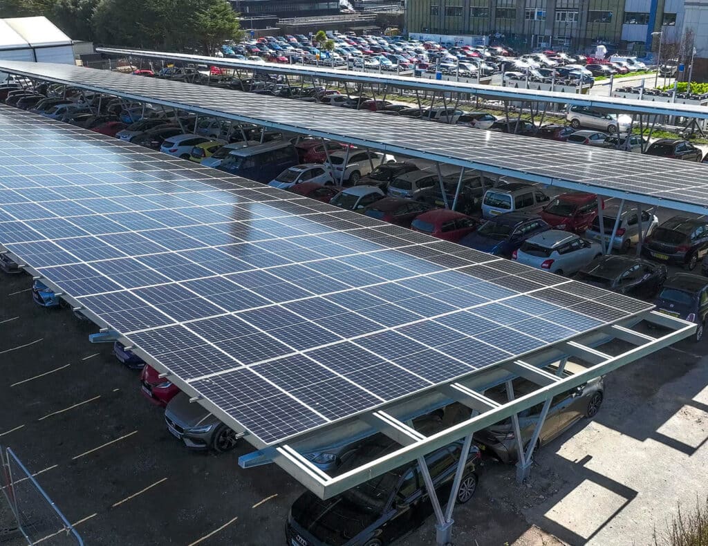 The new solar array comprises over 2,412 solar panels across eight canopies that cover 400 car parking spaces. As high energy users, the hospital will make significant savings by generating its renewable electricity on-site and reducing the hospital’s reliance on electricity from the national grid.