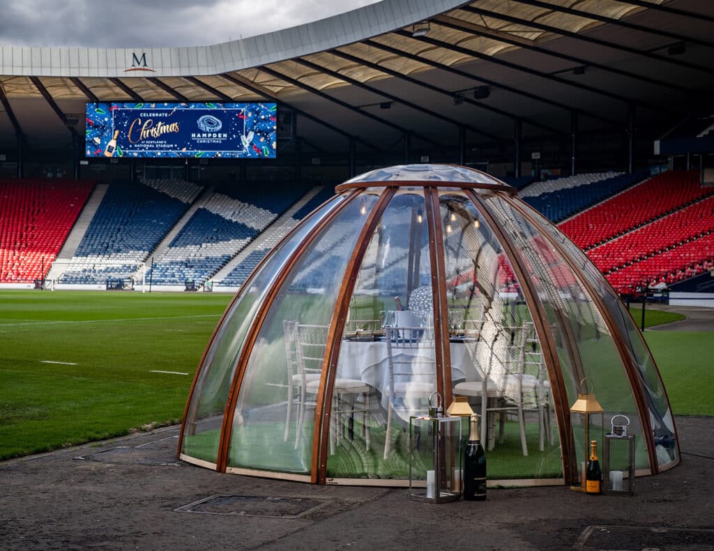 | 10 November 2023 Sodexo Live!, the venue partner to some of the most famous stadia across the UK, including Hampden Park, is offering Christmas events with a difference this festive season, in the form of dining in exclusive hospitality domes situated on the edge of the pitch of Scotland’s National Stadium. Available for the Christmas party season, the clear domes seat six people and are available for private hire for three hours. There is a choice of a five-course taster menu or a grazing menu option, all dishes use in-season, locally sourced dishes specifically created by the company’s team of chefs. Guests receive VIP treatment from arrival, with a welcome glass of champagne, an exclusive behind-the-scenes look at the home side’s changing room and the opportunity to have a personalised message displayed on the scoreboard. Chief executive officer Rebecca Kane Burton said: “Sodexo Live! is committed to delivering memorable experiences all year round, but we believe Christmas should be extra special, which is why we have launched our exclusive first-class pitch side dining experience. “What better way to enjoy a football-inspired festive event with the family, office party or Christmas get-together with friends. The domes are just one example of how Sodexo Live! does things differently in the marketplace.” Scottish Football Marketing commercial director Brendan Napier: “One of the priorities for the Scottish FA is to provide memorable fan experiences for Scotland supporters and this innovative new initiative from Sodexo Live! undoubtedly delivers this. By bringing fans right to the heart of Hampden Park for a unique dining experience, Scotland supporters can treat themselves to an unforgettable evening where they can make yet more treasured memories at the national stadium.” A long-term partner since 1999, the company has been continuously supporting Scotland’s national stadium with services such as catering, retail, hospitality, conferences, events, marketing, and sales. |