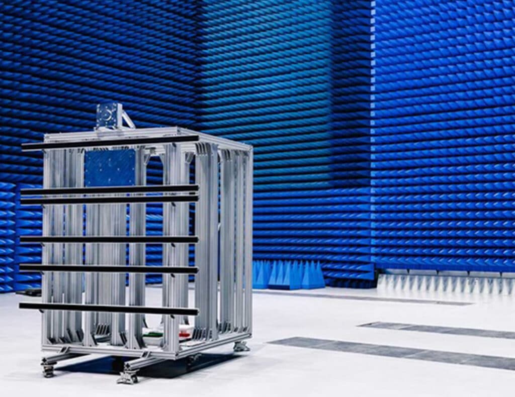 A vibration chamber installed on a highly calibrated suspension system will replicate the conditions of a rocket launch, alongside an electromagnetic compatibility anechoic chamber to test electronic devices for both radiated and conducted radio frequency emissions. The chamber’s interiors are encased in a highly absorbent fire resistant blue spiky foam that reduces oxygen levels. The building’s light weight steel frame with CLT floor slabs minimises building loads and foundation requirements.