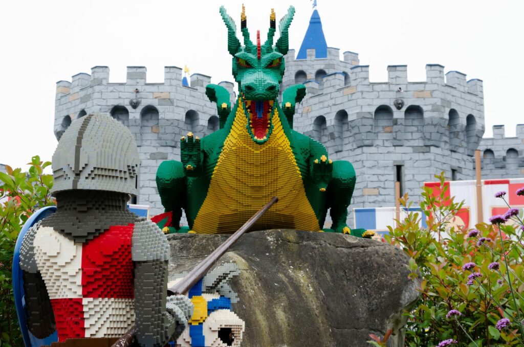 The park is split into 12 themed lands, incorporating various attractions, restaurants and shops: The Beginning, Duplo Valley, Knight’s Kingdom, Lego City, Miniland, Lego Ninjago World, Pirate Shores, Heartlake City, Kingdom of the Pharaohs, Land of the Vikings, Imagination, Lego Mythica: World of Mythical Creatures.
