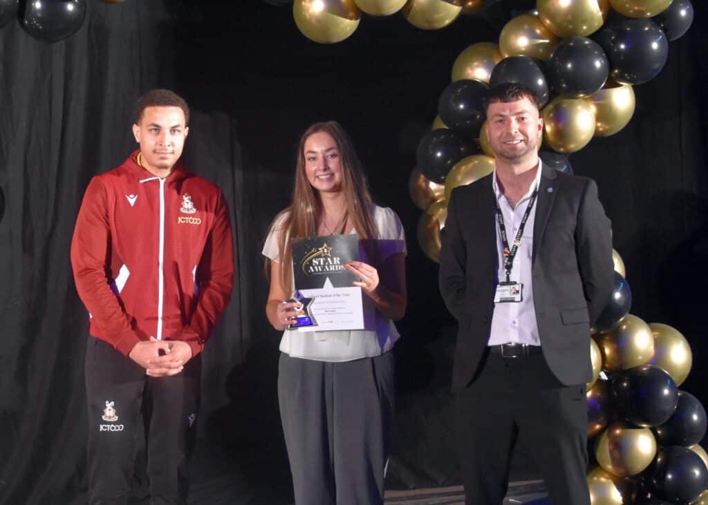 The awards were presented to Faye by Bradford City Football Club players Lewis Richards and Zac Hadi, alongside Bradford College representative Nicky Betteridge, at an event held on 29 April.