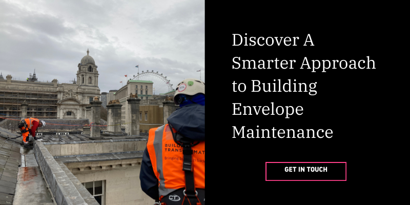 Building Transformation operates as a building-envelope partner, providing a complete process from access through to repair and maintenance. We access, survey, diagnose and fix façade and roof issues, then help you plan maintenance, so the building remains safe and watertight.