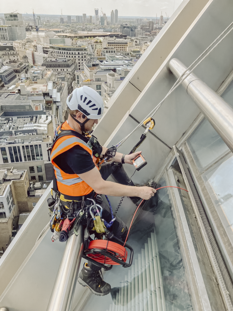 IRATA rope access (abseiling) – As IRATA International members, rope access provides a safe, efficient and versatile method for inspecting or repairing high-level façades with minimal disruption.